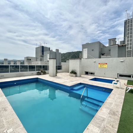 En la terraza se encuentra la piscina al aire libre y en planta baja se puede disfrutar de las atracciones del shopping como juegos para niños, un Carrefour express, tiendas de ropa , cervecerías y bares.