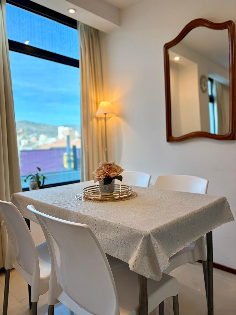 Departamento de un dormitorio Cama matrimonial o dos individuales y una cama con un carro debajo (marinera)  El valor publicado es hasta dos personas.