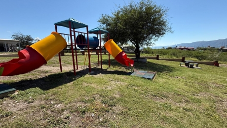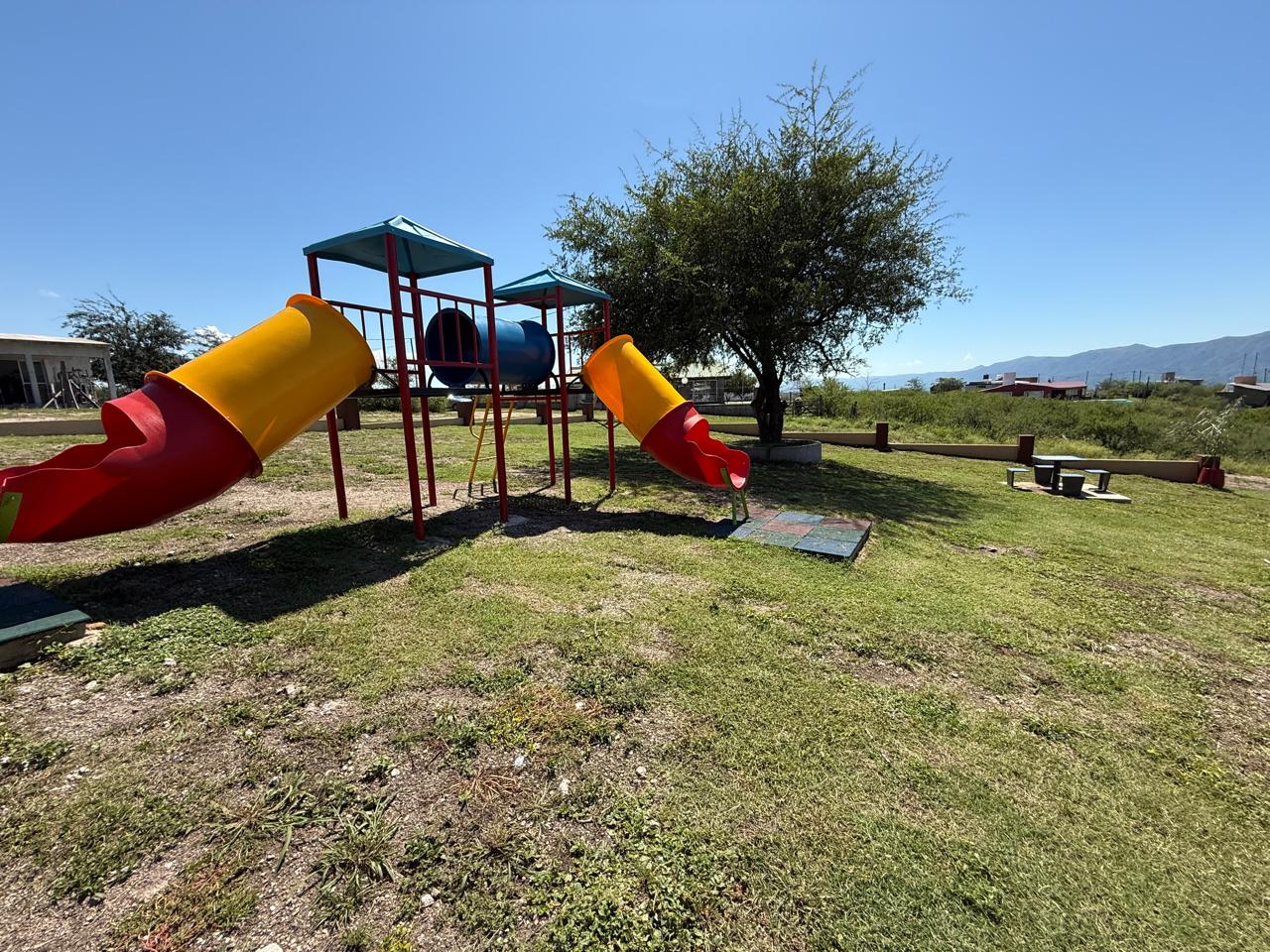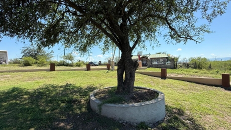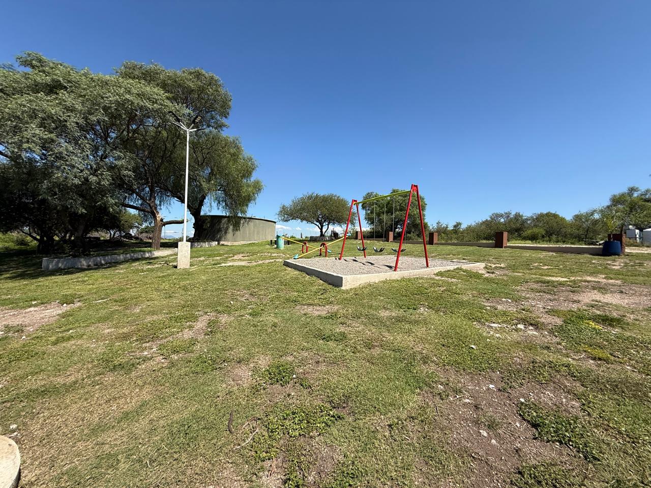 Características: llano, cercado al frente con postes, alambre y varillas. Hay casas en sus dos lados y a pocos metros de la plaza.