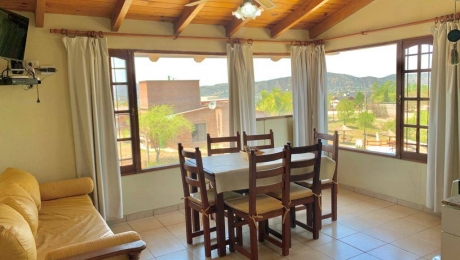 Emplazada en una sola planta: Casa cocina, comedor estar- gran balcón con vista panorámica al lago San Roque y a toda la ciudad de Villa Carlos Paz, cuenta con tres dormitorios, dos baños, uno con antebaño, el otro en la suite- oficina con ingreso independiente desde la calle, y conectada al interior de la casa. Desde cualquier ambiente se puede observar la vista al lago, a Carlos Paz o a los Gigantes ¡ 360° de vista!