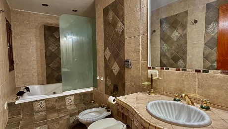 Total: 4 baños:  tres en la casa, uno en el quincho.